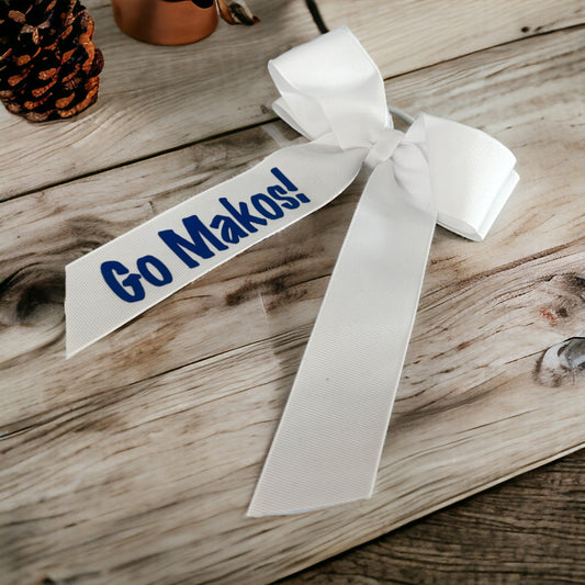 Team School Name Bow, Personalized in Glitter Lettering, Hair Ribbon Choose Your Colors, Light Blue & White