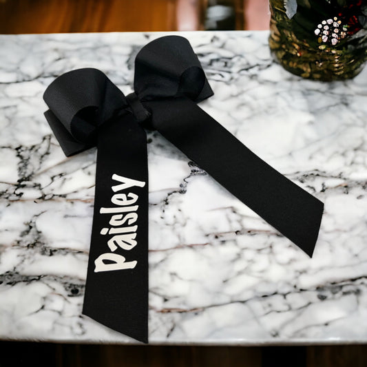 Name & Number Personalized Hair Bow with Tails , Choose your Colors
