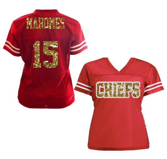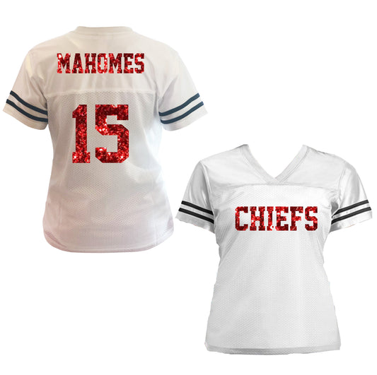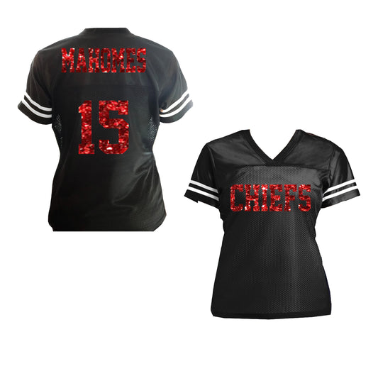 Mahomes Chiefs Jersey with Number on the Back, Red Black or White Bling Shirt