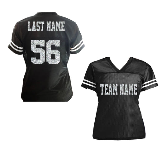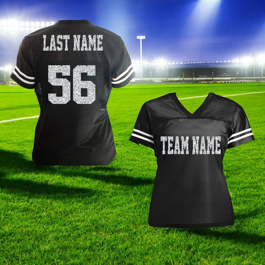 Black & Gold or Choose Your Colors Glitter Football Jersey for Women, Moms