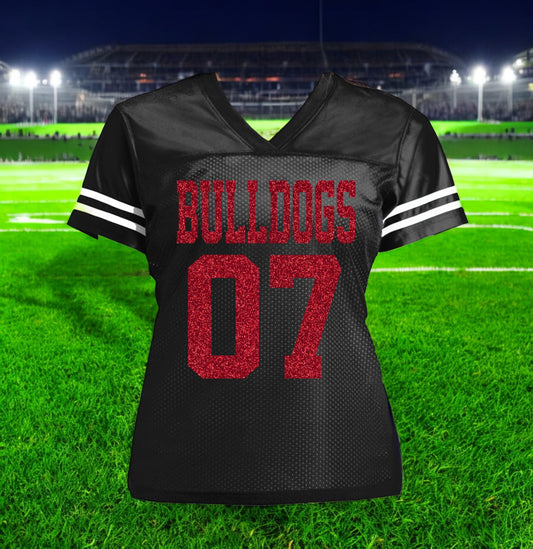 Glitter Football Ladies Jersey with School Team Name & Number, Mom Shirt