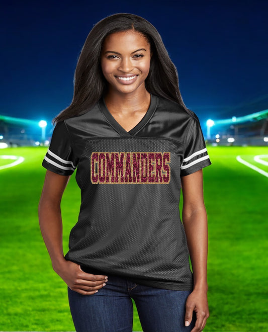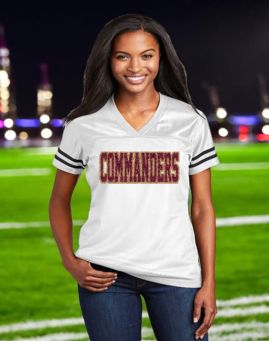 Washington Commanders Glitter Football Jersey, Black or White Sparkly Ladies Shirt, Playoff, Burgundy Gold