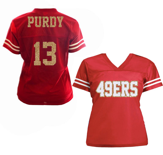 Purdy 49ers Glitter Jersey for Women, Brock San Francisco Football Shirt
