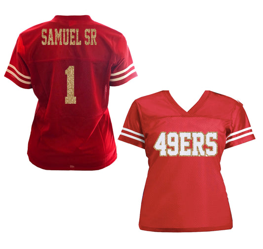 Samuel Sr 49ers Glitter Jersey for Women, Deebo San Francisco Football Shirt