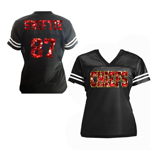 Chiefs Swiftie Glitter Football Jersey Kelce Taylor