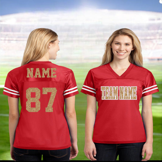 Women's Glitter Football Jersey, Personalized , Red Gold White or Choose Colors