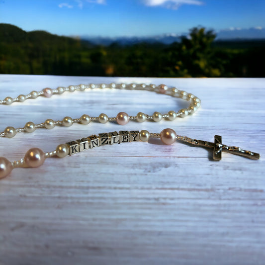 Choose Yours Colors Pearl Name Rosary, Boy or Girl