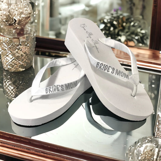 Ivory Gold Bride's Mom Glitter Flip Flops, Choose Heel Height & Wedding or Dress Colors