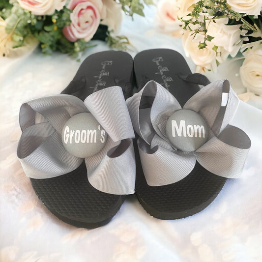 White Bow Bride's Mom Ribbon Flip Flop Sandals