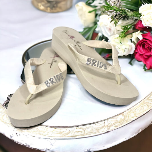 Ivory & Silver or Choose Heel Height & Colors Glitter Bride Flip Flops