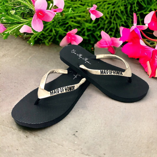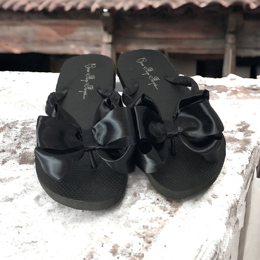 Black & Silver Satin Bow Flip Flops for Ladies & Girls - Customize Yours!