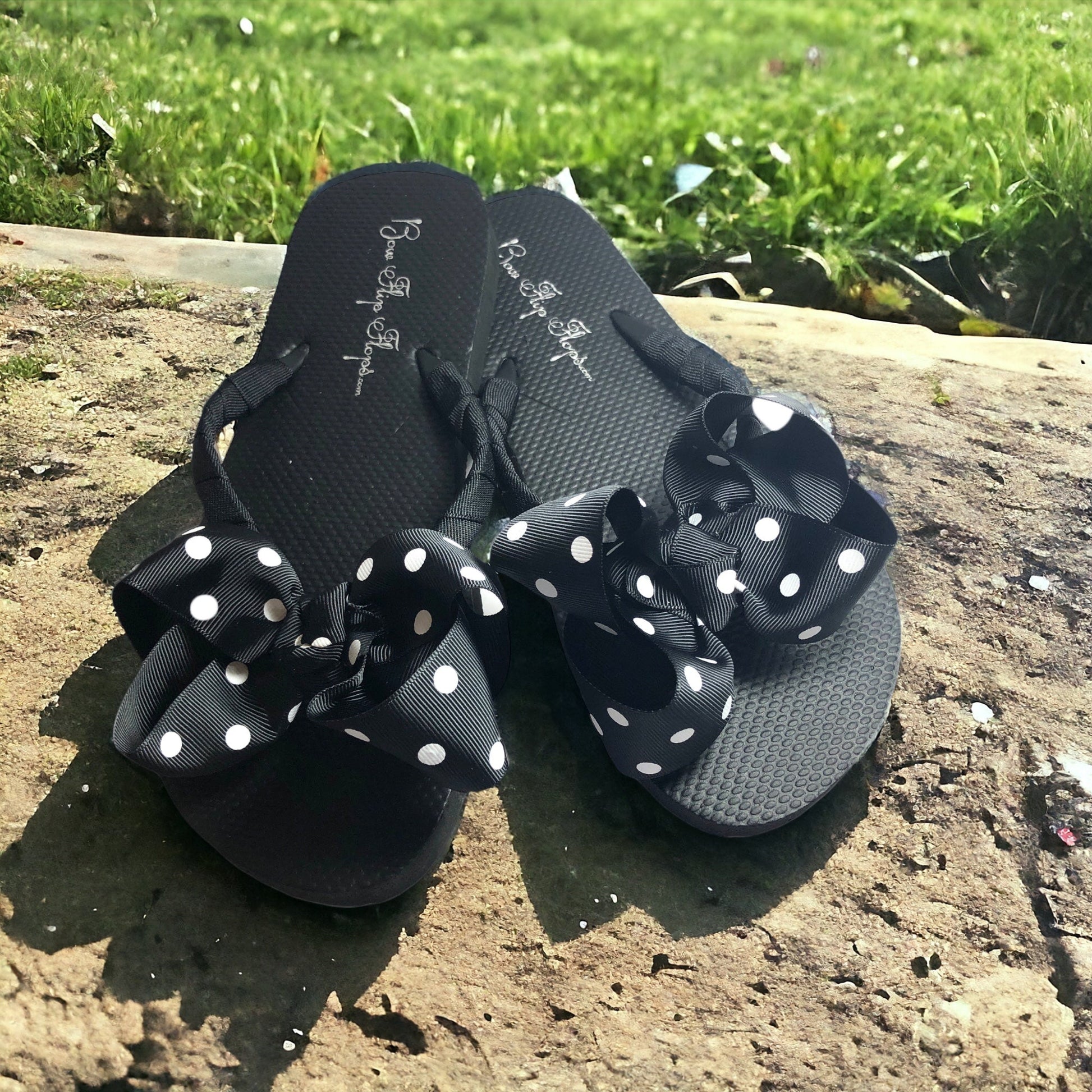 Gray & Black Polka Dot Bow Flip Flops - Choose Your Ribbon Color